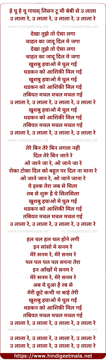 Poetic Translation - Lyrics of Oo Lala Re - उ लाला रे
