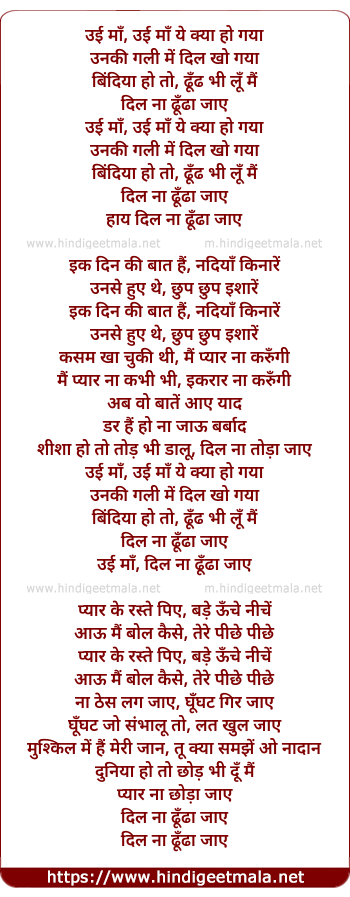 Lyrics of Ooi Ma Yeh Kya Ho Gaya - उई माँ, उई माँ ये क्या हो गया