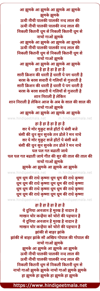 Lyrics of Oonchi Neechi Paalaki Paalaki Nand Laal Ki - ऊँची नीची पालकी पालकी नन्द लाल की