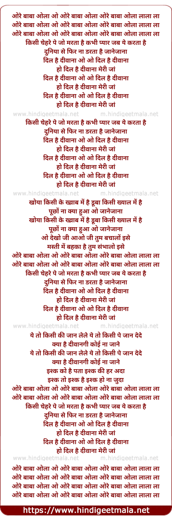 Lyrics of Ore Baba Ola Lala La - ओरे बाबा ओला लाला ला
