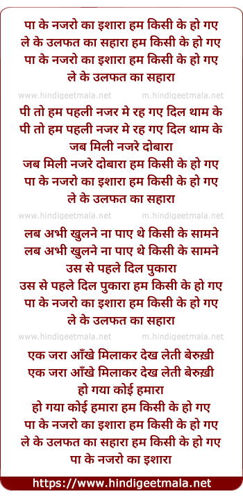Lyrics of Pa Ke Nazro Ka Ishara - पा के नजरो का इशारा हम किसी के हो गए