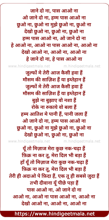 Lyrics of Paas Aao Na (Jaane Do Naa) - पास आओ ना