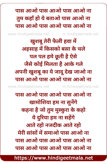 Lyrics of Paas Aao Naa - पास आओ पास आओ पास आओ ना