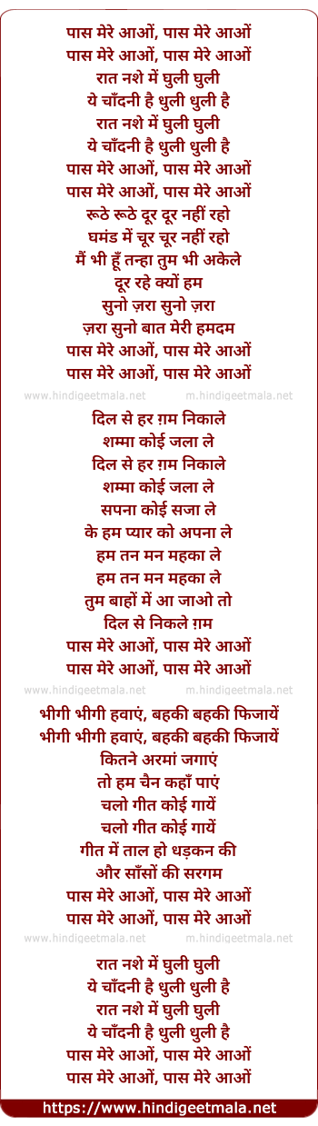 Lyrics of Paas Mere Aao - पास मेरे आओं