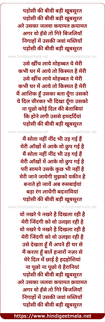 Lyrics of Padosi Ki Biwi Badi Khubsoorat - पड़ोसी की बीवी बड़ी खूबसूरत