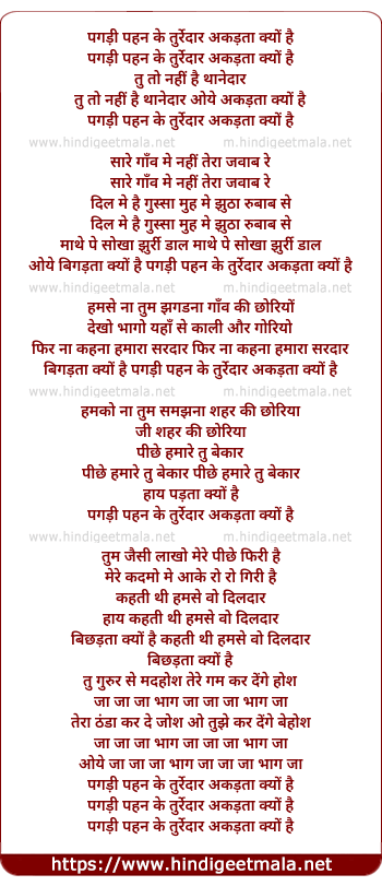 Lyrics of Pagdi Pahan Ke Turredar Akadta Kyo Hai - पगड़ी पहन के तुर्रेदार अकड़ता क्यों है
