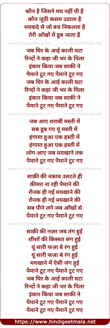 Lyrics of Paimaane Tut Gae - कौन है जिसने मय नहीं पी है