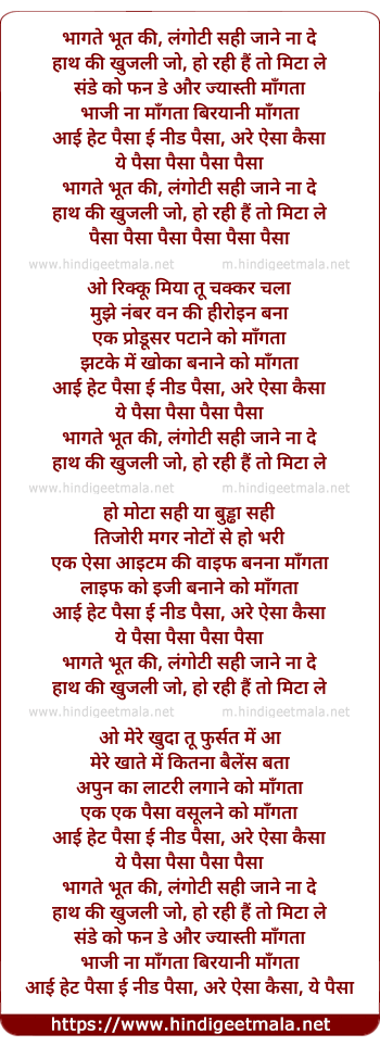 i hate paisa i need paisa, are aisa kaisa, ye paisa
