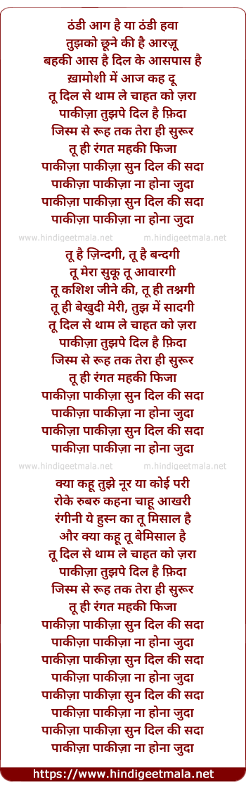 Lyrics of Pakeeza - ठंडी आग है या ठंडी हवा