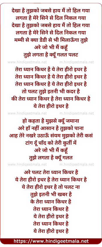 Lyrics of Palat - Tera Hero Idhar Hai (Remix) - पलट - तेरा हीरो इधर है