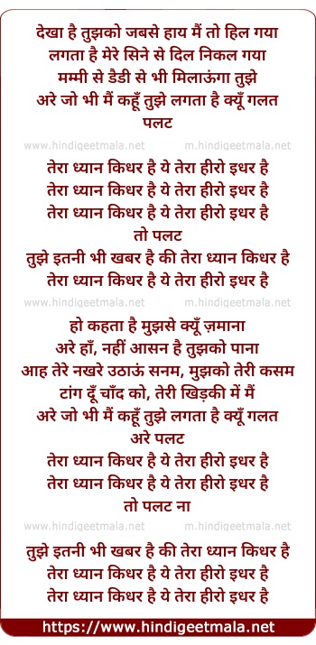 tera dhyan kidhar hai ye tera hero idhar hai