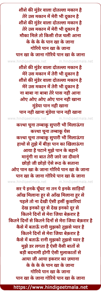 Lyrics of Pan Kha Ke Jana - पान खा के जाना