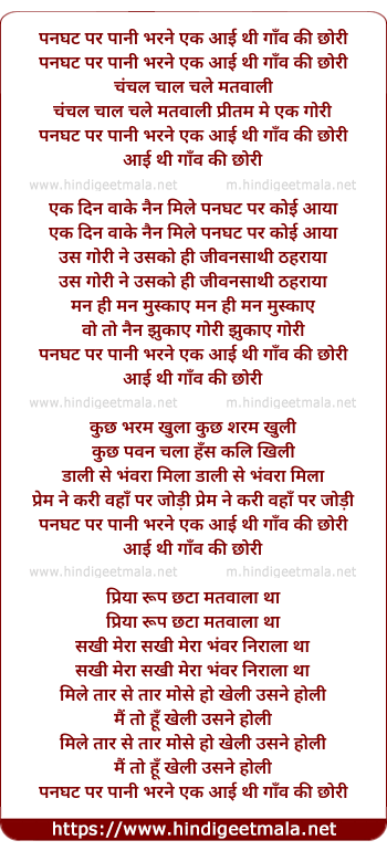 Lyrics of Panghat Par Pani Bharane - पनघट पर पानी भरने एक आई थी गाँव की छोरी