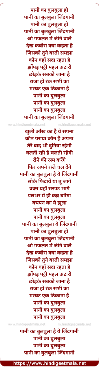 Lyrics of Pani Ka Bulbula - पानी का बुलबुला हो