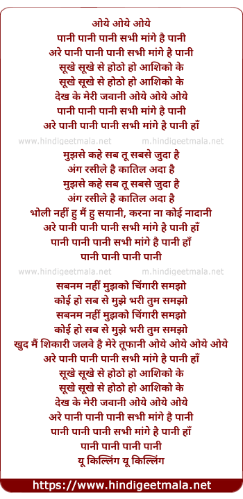 are pani pani pani sabhi mange hai pani haan