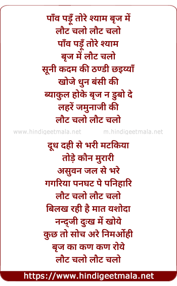 Lyrics of Paon Padun Tore Shyam - पाँव पड़ूँ तोरे श्याम