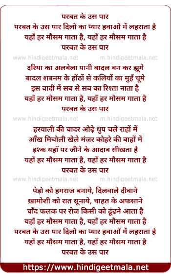 Lyrics of Parbat Ke Us Paar - परबत के उस पार