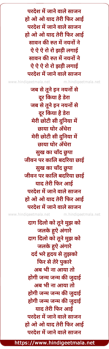 Lyrics of Pardes Me Jane Wale - परदेश में जाने वाले साजन