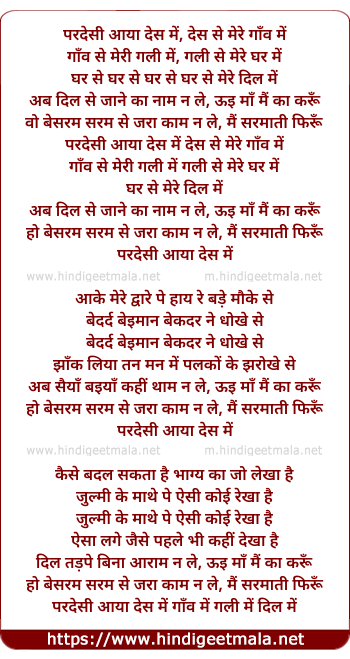 Lyrics of Pardesi Aaya Des Mein - परदेशी आया देश में