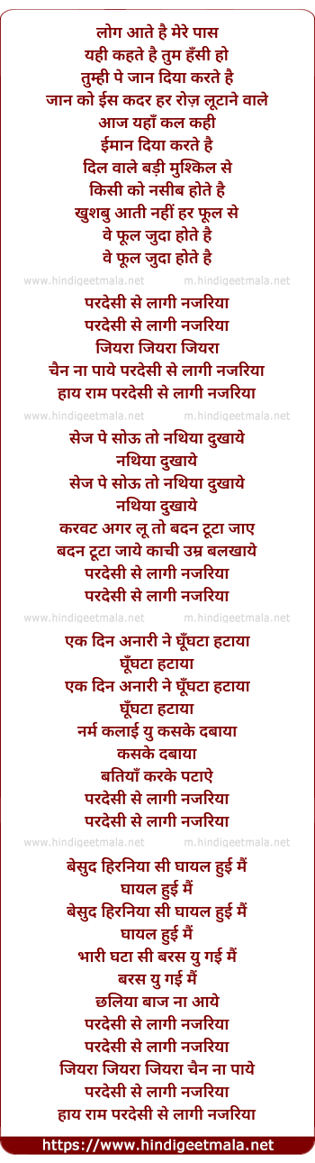 Lyrics of Pardesi Se Laagi Najariya - परदेसी से लागी नजरिया