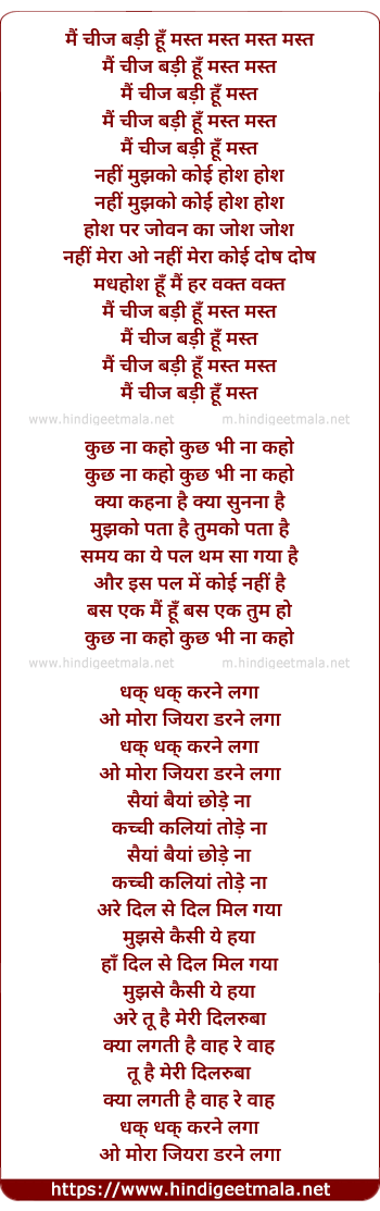 Poetic Translation - Lyrics of Parody (Zamaana Deewana) - मैं चीज बड़ी हूँ मस्त मस्त मस्त मस्त