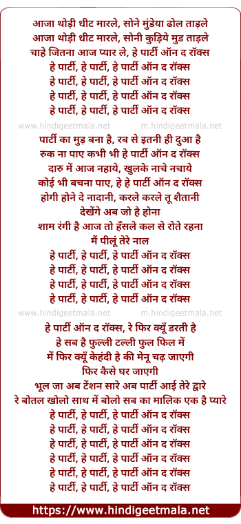 Lyrics of Party On The Rocks - आजा थोड़ी धीट मारले, सोने मुंडेया ढोल ताड़ले