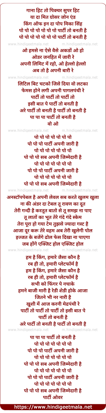 Lyrics of Party Toh Banti Hai (Remix) - पार्टी तो बनती है