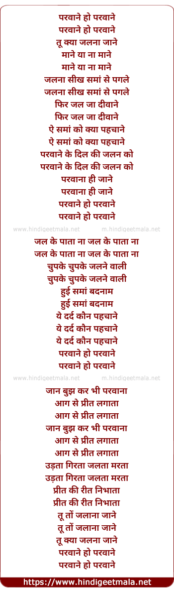 Lyrics of Parwane Ho Parwane - परवाने हो परवाने