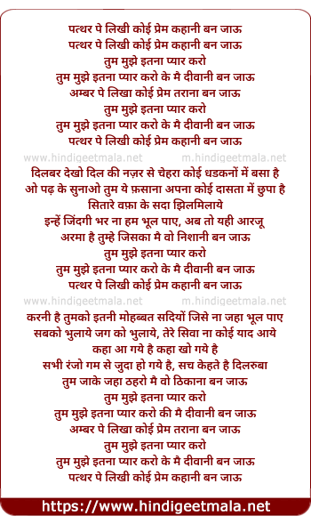 Lyrics of Pathar Pe Likhi Koi Prem Kahani Ban Jau - पत्थर पे लिखी कोई प्रेम कहानी बन जाऊँ