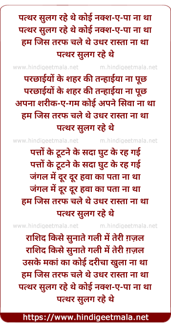 Lyrics of Pathar Sulag Rahein The - पत्थर सुलग रहे थे कोई नक्श-ए-पा ना था