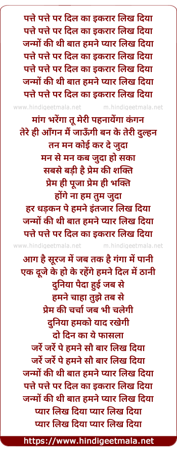 Lyrics of Patte Patte Par Dil Ka Ikraar Likh Diya - पत्ते पत्ते पर दिल का इकरार लिख दिया