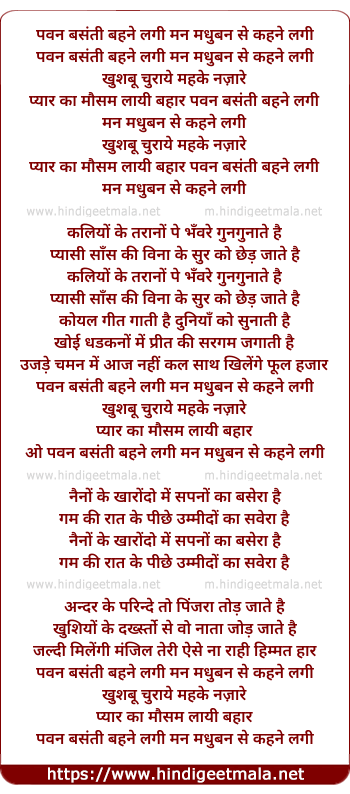 Lyrics of Pawan Basanti Bahne Lagi - पवन बसंती बहने लगी