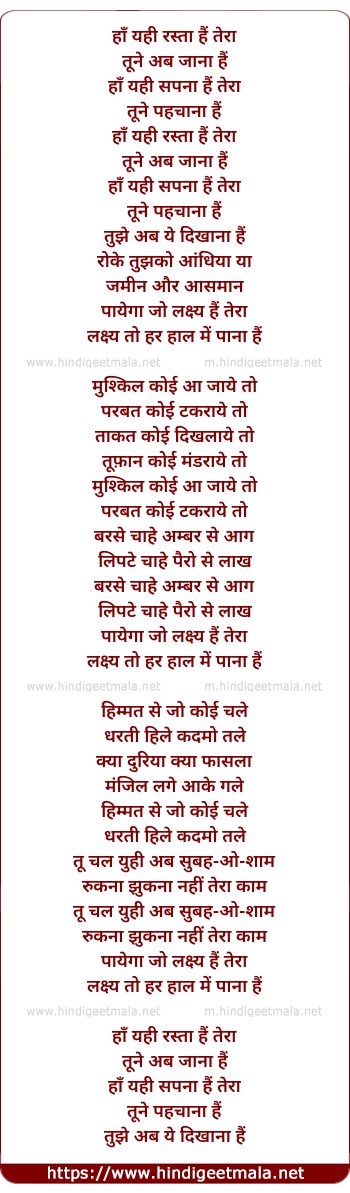 Lyrics of Payega Jo Lakshya Hai Teraa - पायेगा जो लक्ष्य हैं तेरा