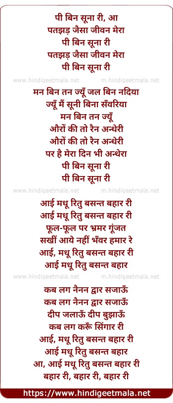 Lyrics of Pee Bin Suna Ree - पी बिन सूना री