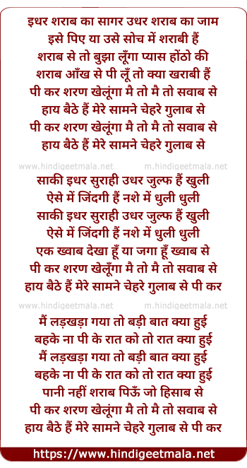 Lyrics of Pee Kar Sharab Khailon Ga, Main To Shabab Se - पी कर शराब खेलूंगा मै तो मै तो शबाब से