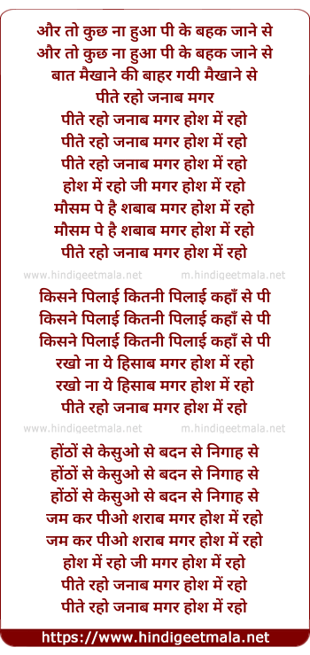 Lyrics of Peete Raho Janab - और तो कुछ ना हुआ पी के बहक जाने से