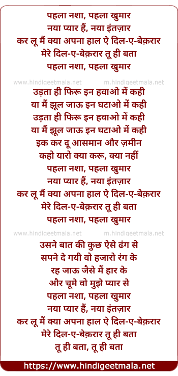 Lyrics of Pehla Nasha - पहला नशा, पहला खुमार