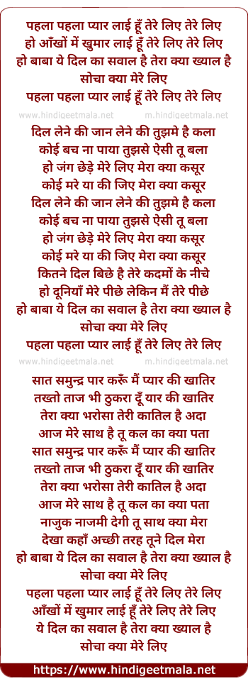 pehla pehla pyar laai hu tere liye tere liye