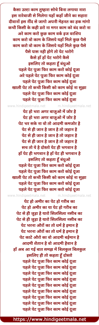 Lyrics of Pehle Pet Pooja - पहले पेट पूजा