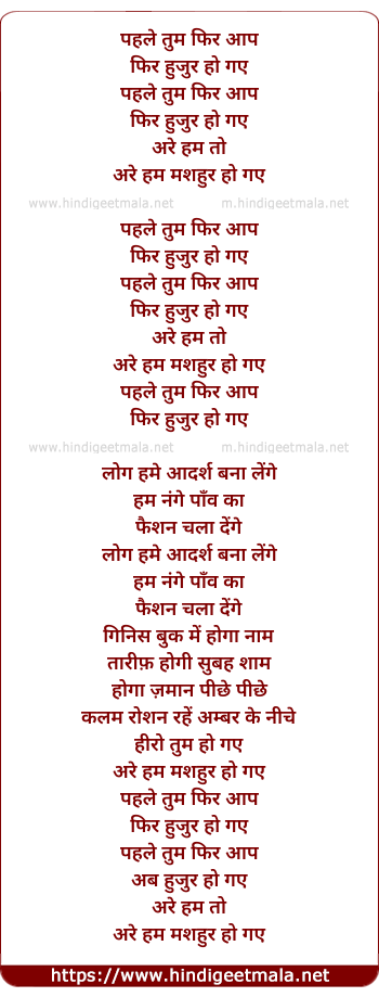 Lyrics of Pehle Tum Phir Aap - पहले तुम फिर आप