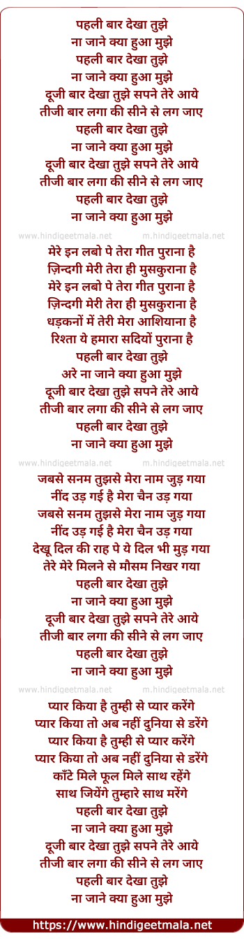 Lyrics of Pehli Baar Dekha - पहली बार देखा