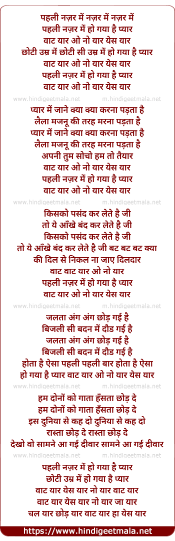 Lyrics of Pehli Nazar Me Ho Gaya Hai Pyar - पहली नज़र में हो गया है प्यार