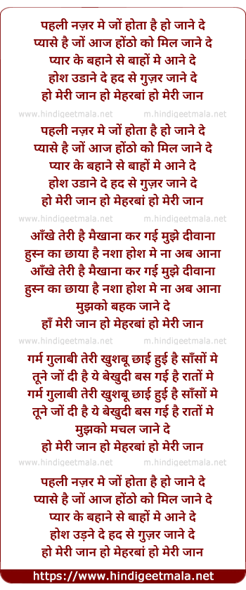 Lyrics of Pehli Nazar Mein - पहली नज़र में