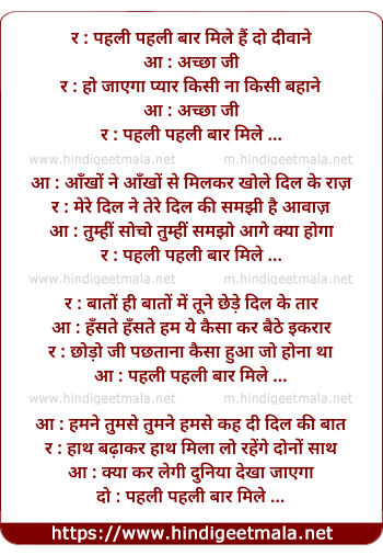 Lyrics of Pehli Pehli Bar Mile Hai Do Diwane - र : पहली पहली बार मिले हैं दो दीवाने