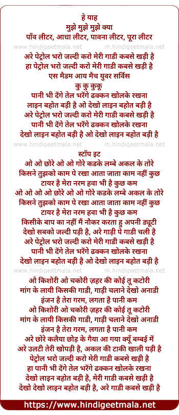 Lyrics of Petrol Bharo Jaldi Karo - पेट्रोल भरो जल्दी करो