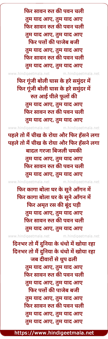 Lyrics of Phir Sawan Rut Ki Pawan Chali - फिर सावन रुत की पवन चली