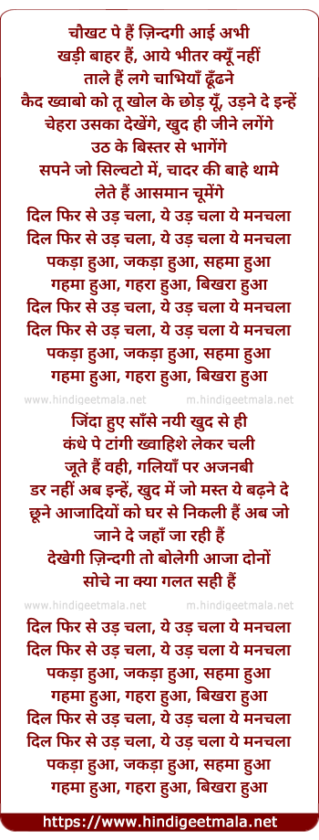 Lyrics of Phir Se Udd Chala - फिर से उड़ चला