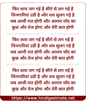 Lyrics of Phir Shaam Jag Gayee - फिर शाम जग गई है सीने से लग गई है