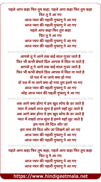 Lyrics of Phle Aap Kaha Phir Tum Kaha - पहले आप कहा फिर तुम कहा