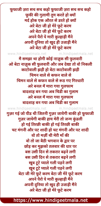 Lyrics of Phoofaji Zara Sach Sach Kaho - फूफाजी ज़रा सच सच कहो